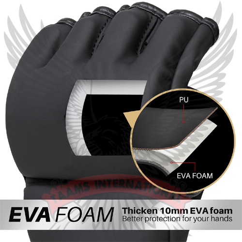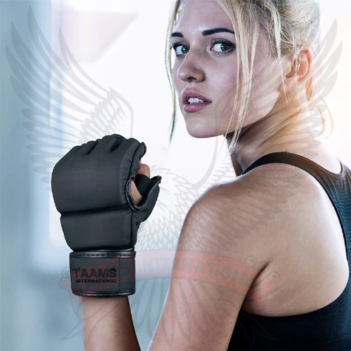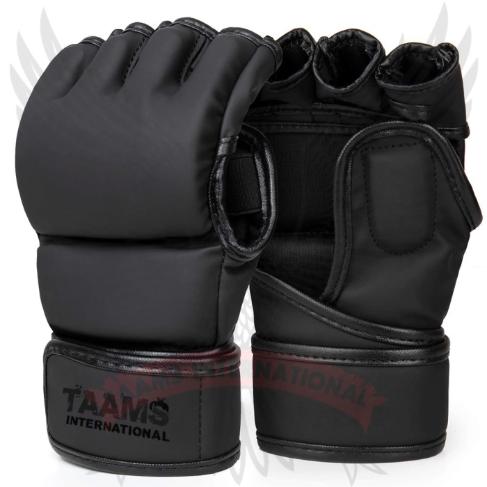 Taams International MMA GLOVES are the ultimate choice for all fitness and MMA classes. High quality Premium leather along with superior construction provides a comfortable feel and long-lasting durability. Custom MMA gloves are constructed of Premium Quality Leather with three layers of foam core system for excellent hand and knuckle protection and shock dispersement. Patent open palm with Split knuckles and '' Open Thumb Loop '' Designed for the ultimate grappling control with minimal restriction.